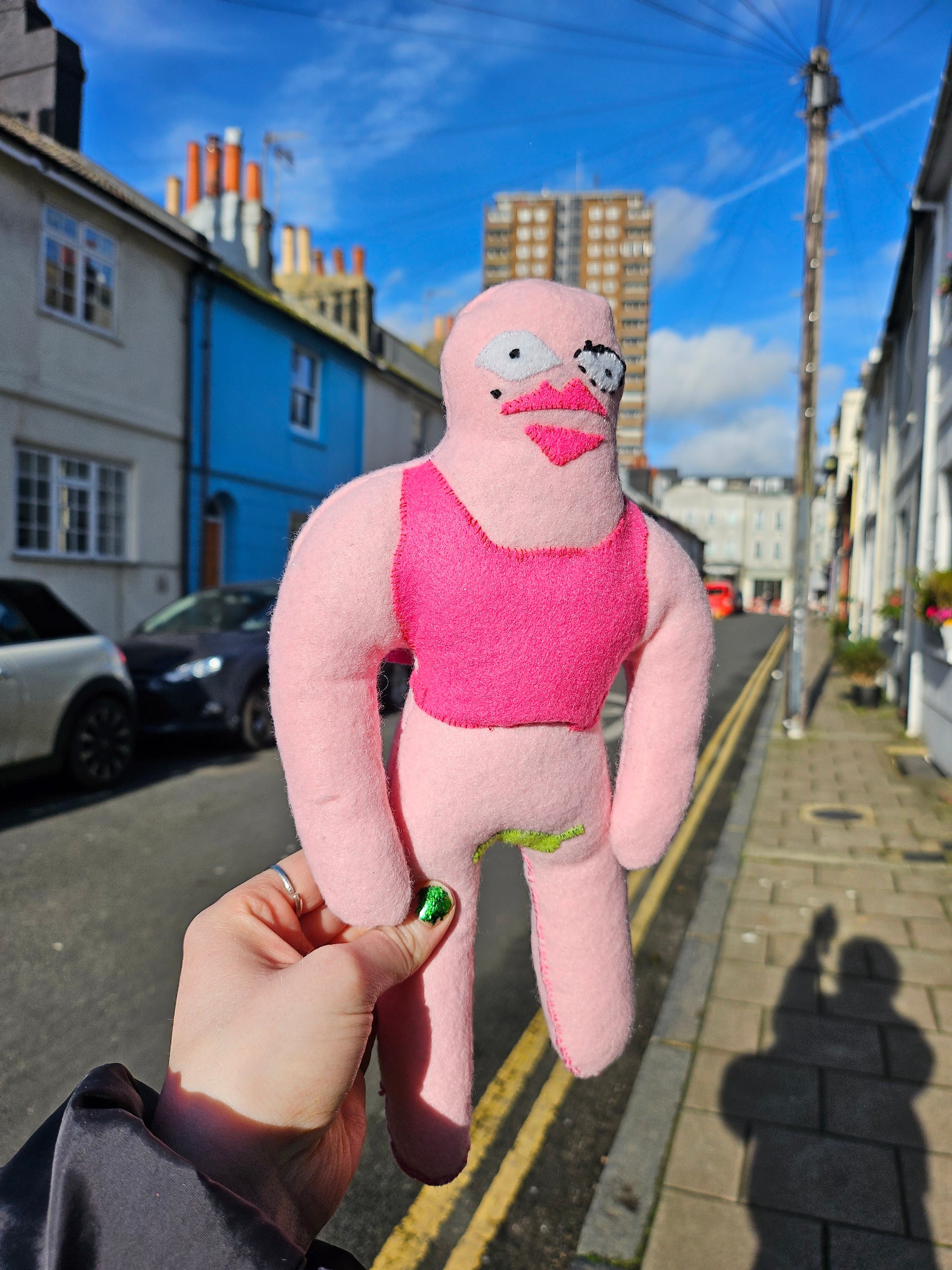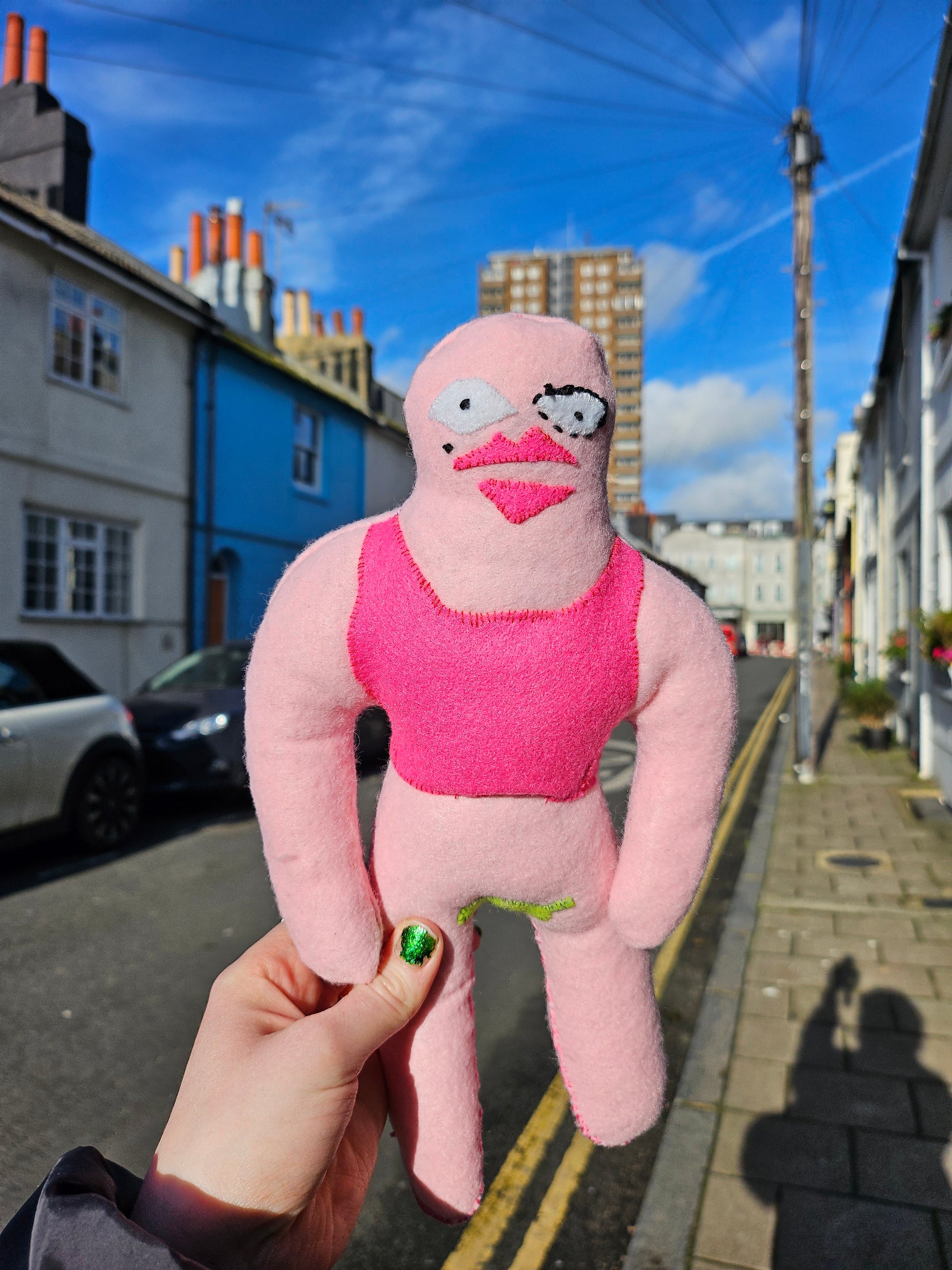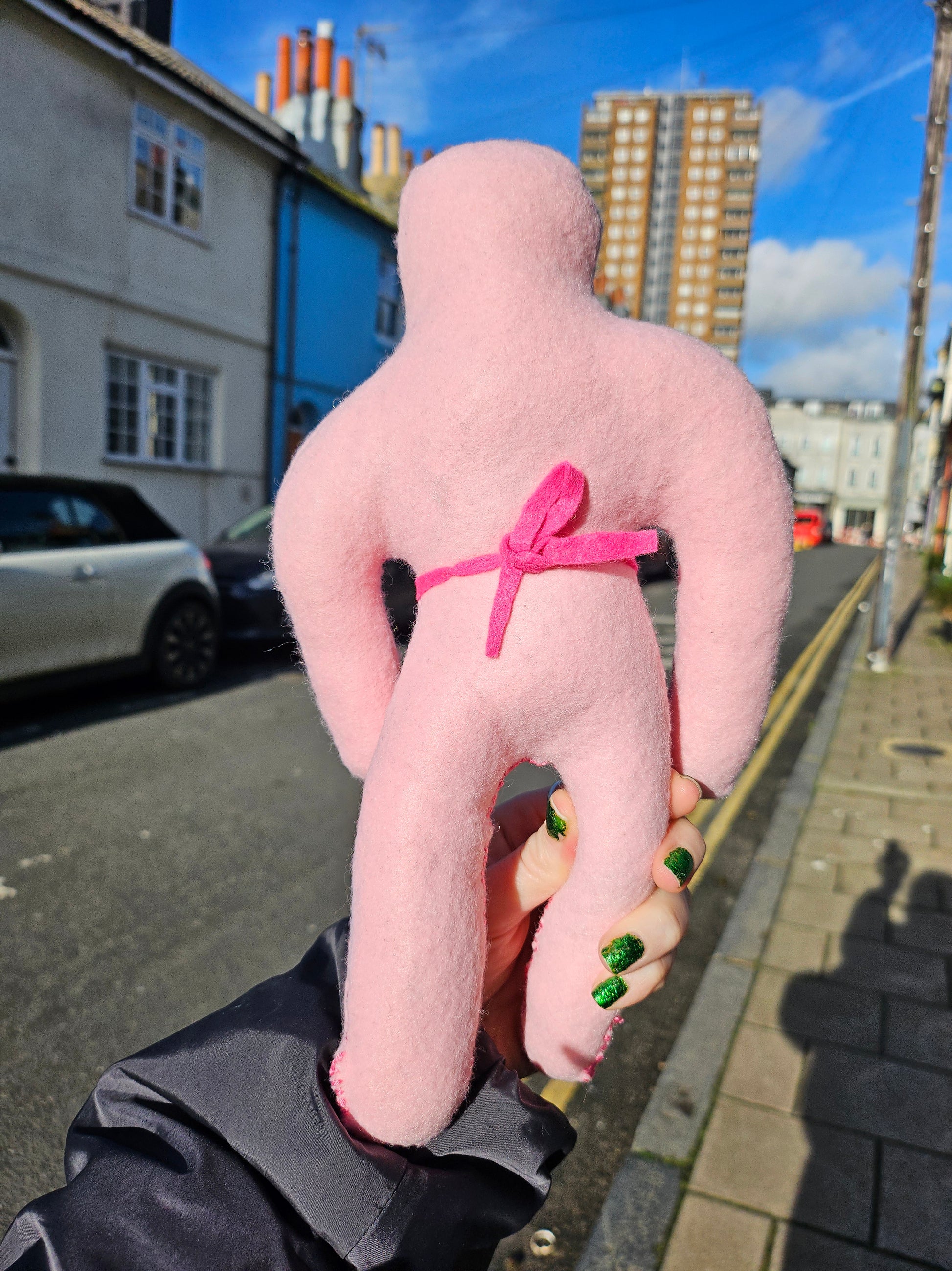 Beautiful bald lady decorative figurine, handmade with felt