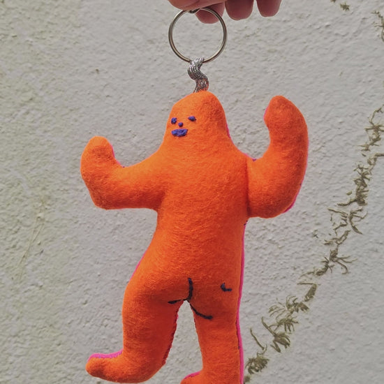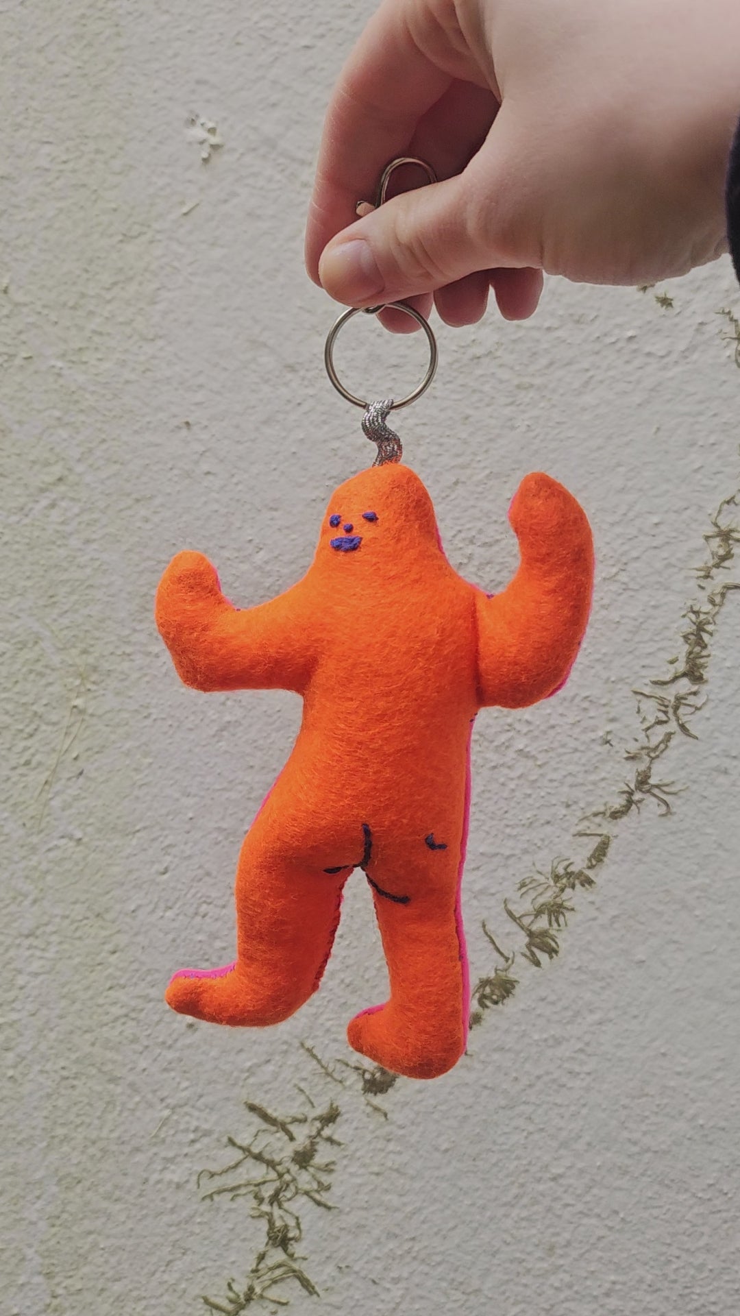 Orange and pink felt plushie with detachable keyring. Hand cut and sewn by me! Stuffed with 100% Hi-loft Polyester soft toy filling. Cheeky hand embroidered tush.