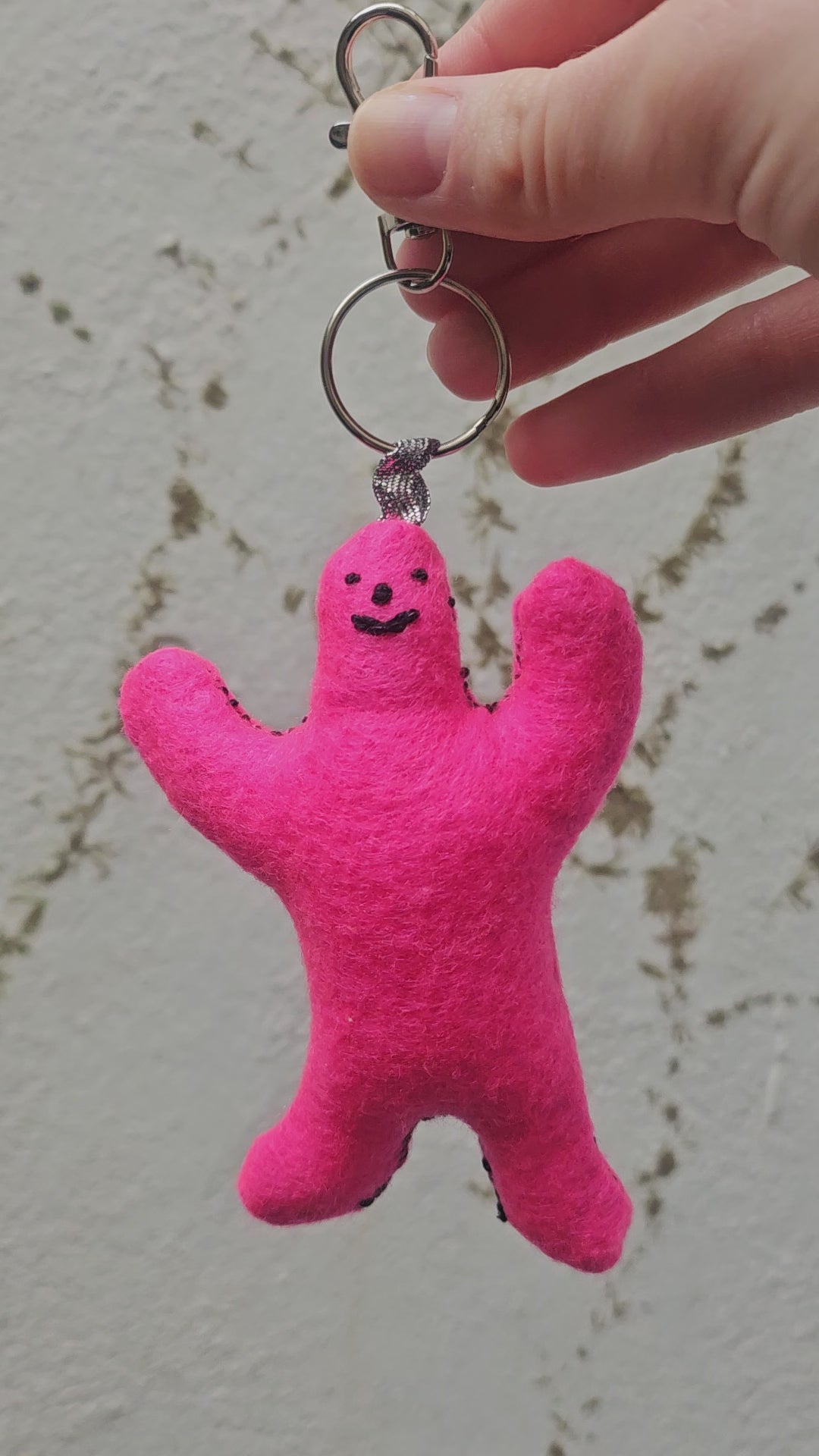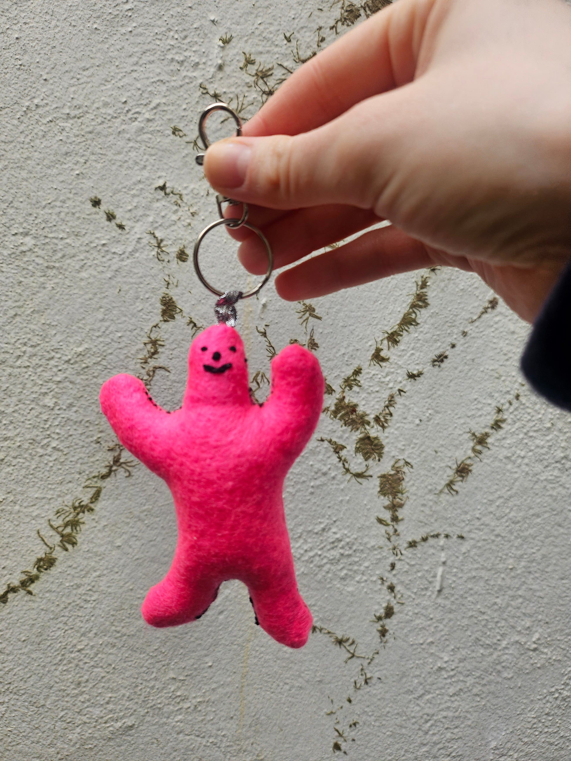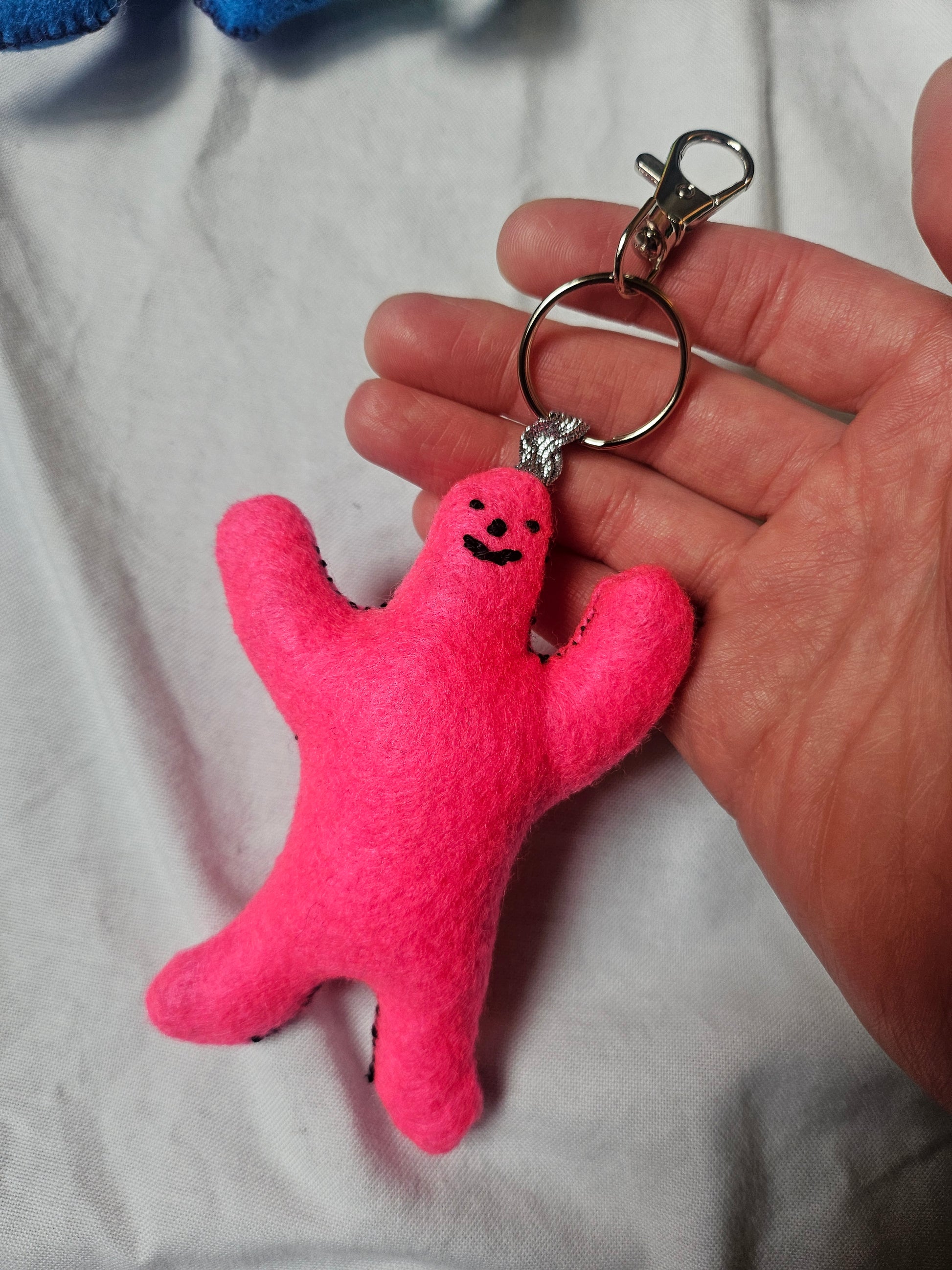 Pink felt plushie with detachable keyring. Hand cut and sewn by me! Stuffed with 100% Hi-loft Polyester soft toy filling.